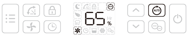 Drücken Sie die Taste „Auto“, um den Modus „Auto-Entfeuchtung“ auszuwählen. Das Gerät läuft automatisch entsprechend der gemessenen Umgebungsfeuchtigkeit, gemäss den folgenden Richtwerten: