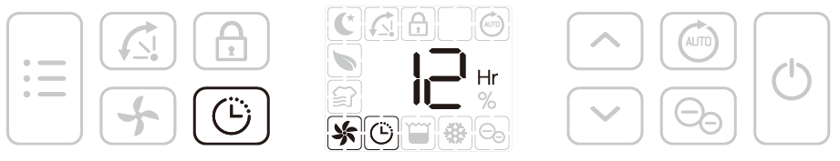 Drücken Sie die Timer-Taste und dann die Aufwärts-/Abwärts-Tasten, um die gewünschte Zeit von 00-24 Stunden für das automatische Ausschalten des Geräts einzugeben. Die Zeit wird in Einstundenschritten bei jeder Betätigung der Aufwärts-/Abwärts-Tasten gewählt.