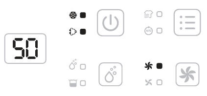 Wenn sich bei niedriger Umgebungstemperatur Eis im Gerät bildet, wechselt der Luftentfeuchter in den Abtaumodus. Das Gerät läuft mit hoher Lüfterdrehzahl, ohne zu entfeuchten. Sobald der Frost abgetaut ist, nimmt das Gerät den Entfeuchtungsbetrieb automatisch wieder auf.