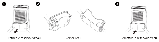 Remarque : si le réservoir d'eau est retiré ou mal positionné, le phénomène décrit ci-dessus se produit également.